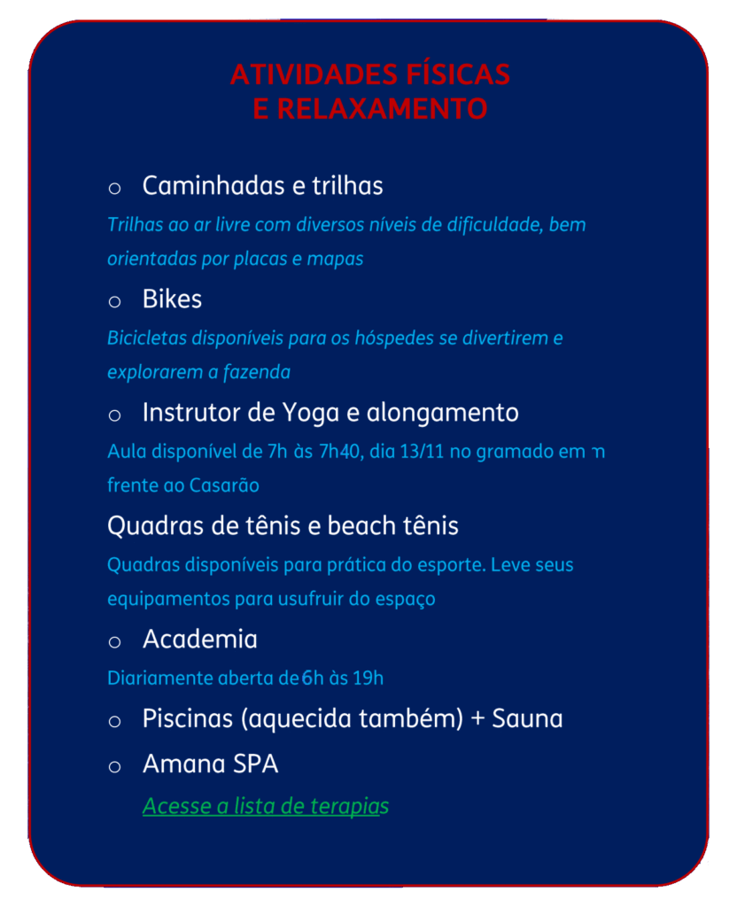 Momento livre para relaxar, praticar exercícios ou contemplar a natureza